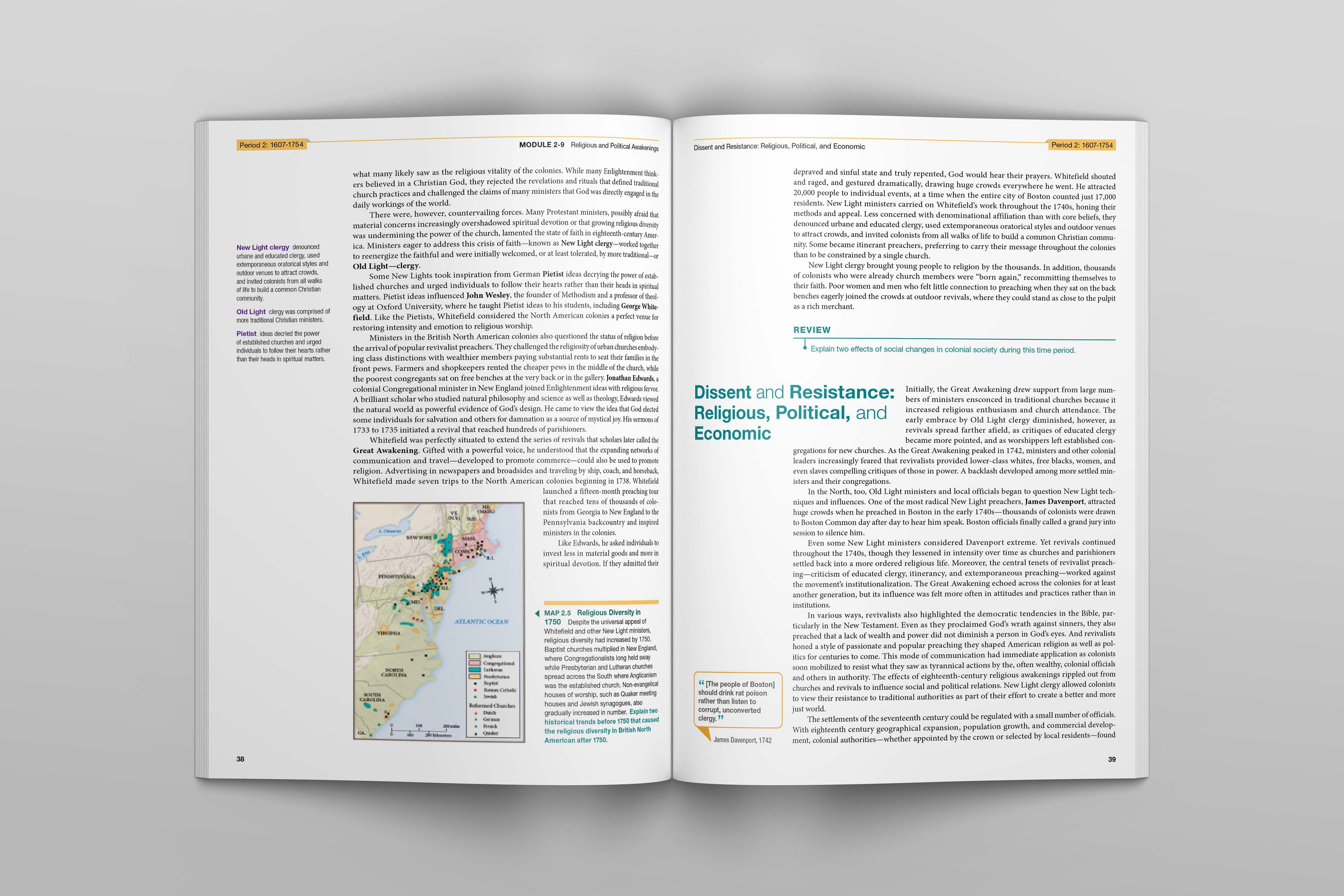 First edition interior design for AP U.S. History textbook, Fabric of a Nation